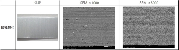 アルミ本来の軽さと強度を保ちます。ただし酸化被膜は絶縁体のため電気伝導性は低下します。