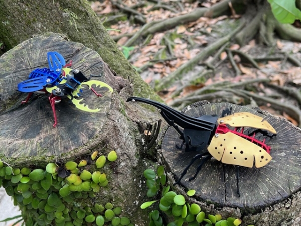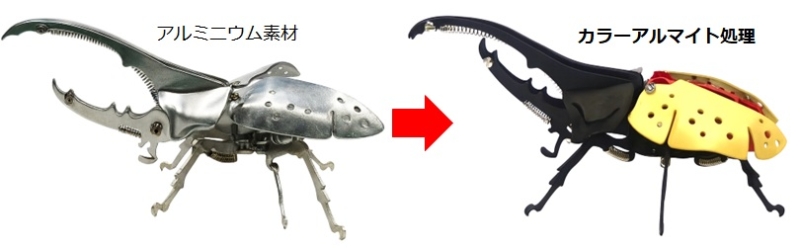 こちらは学研のメタルキット「ヘラクレスオオカブト」と「ギラファノコギリクワガタ」にカラーアルマイトの処理をしたものです。